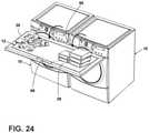 FIG. 25 is a perspective view of another embodiment of the modular laundry system shown inFIG. 8, wherein a worksurface comprises a wrinkle removing press shown in a closed position.