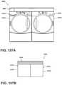 FIG. 71A illustrates a singleheight cabinet module1070 that is defined by a space bounded by spaced left andright side walls1072,1073, spaced front andrear walls1074,1075, and spaced top andbottom walls1076,1077. The singleheight cabinet module1070 has a width W and a height H approximately equal to the width W and the height H, respectively, of thelaundry appliance1010. Thus, the singleheight cabinet module1070 can be positioned adjacent to thelaundry appliance1010 with thetop walls1016,1076 forming a generally continuous surface or can be vertically stacked with thelaundry appliance1010, whereby theleft side walls1012,1072 and theright side walls1013,1073 each form a generally continuous surface. The singleheight cabinet module1070 can have any suitable depth D, such as a depth equal to the depth D of thelaundry appliance1010. When the depth D is equal to that of thelaundry appliance1010, a footprint of the singleheight cabinet module1070 is the same as that of thelaundry appliance1010. A symbol of the singleheight cabinet module1070, which corresponds to thefront wall1074 of the singleheight cabinet module1070 and is shown inFIG. 71B, is the same as that of thelaundry appliance1010, except for cross-hatching, which indicates that the symbol represents one of themodules1020.