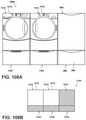 FIGS. 106A-112B illustrate exemplary implementations of the modular laundry system employing the exemplary modules ofFIGS. 90A-102B and the work surface accessories ofFIGS. 103A-105B.FIGS. 106A-112B also include the schematics of the core and customized configurations corresponding the implementations of the modular laundry system. The implementations shown inFIGS. 106A-112B are provided for illustrative purposes and are not intended to limit the invention in any manner. Numerous implementations of the modular laundry system can be derived from thelaundry appliances1010 and themodules1020.