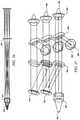 is therefore independent of θ. The summation term represents contributions from all other downstream rollers partially compressing thecompressible tube819. Now let ΔS be the cross sectional area change due to the compression of thecompressible tube819 by theroller817, and L be the length of tube where its cross sectional shape is affected by the tube compression. Then, it is obvious to a person skilled in the art that L is proportional to the tube compression δ, and ΔS proportional to its square, δ2. Consequently, ΔV, the volume of fluid lost due to the compression of thecompressible tube807 by the roller, follows Eqn. (4):