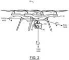 FIG. 2 is a diagram illustrating motion axis conventions for flying objects;
