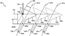 According to yet another embodiment, the pre-calibrated registration probe may be used to capture a large number of points along the surface of cuttingtool103. Based on the relative locations of these points, software associated withCAS system200 may be configured to derivetool axis403. It is contemplated that additional and/or different methods may be used for registering various aspects of cuttingtool103 than those that are listed above. For example, a virtual software model representingcutting tool103 may be generated using computed tomography (CT) scan information. The model may be registered in the virtual coordinate space using the calibrated registration probe. Once registered,tracking system201 associated withCAS system200 can monitor the real-time location, position, and orientation of registered components ofsurgical environment100 relative to the established virtual coordinate space in order to guidecutting tool103 to, targetend points402a-402cby sequentially activating each oftarget end points402a-402cin accordance with the processes and methods consistent with the disclosed embodiments.