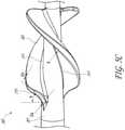 Moreover, increasing the number ofblades303 accordingly increases the number of shear regions at the free end of theblades303. As theimpeller300 rotates, the free ends of theblades303 induce shear stresses on the blood passing by theblades303. In particular, the tip or free edge of theblades303 can induce significant shear stresses. By increasing the overall number ofblades303, the number of regions with high shear stresses are accordingly increased, which can disadvantageously cause an increased risk of hemolysis in some situations. Thus, the number of blades can be selected such that there is adequate flow through the pump, while ensuring that theimpeller300 can still be stored within the sheath and that theblades303 do not induce excessive shear stresses. In various arrangements, for example, an impeller having three blades (such as the impellers shown inFIGS. 7, 9D, and 10A-10B) can achieve an appropriate balance between increased flow rate and reduced risk of hemolysis.