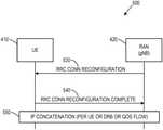 FIG. 5 is a simplified signal flow diagram500 of configuring concatenation, according to some embodiments. For example,FIG. 5 shows proposed IP concatenation control call flow between aUE410 and agNB420. The signaling includes the following two acts: