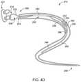 FIG. 8D demonstrates thecontinuous loop220 axially sliding off theneck282 and over the retainingtip288 such that thedistal end258 of thesheath250 and portions of the sheatheddevice210 pass through thecontinuous loop220. As thedistal end258 is retracted away from the damaged tissue, a girth hitch is formed on the damaged tissue as seen inFIG. 8E. In those embodiments where acontinuous loop220 is not implemented to secure the sheatheddevice210 to the damaged tissue, ananchor221 may be implemented. Theanchor221 may engage the damaged tissue as thesheathed device210 is pulled through the damaged tissue and theanchor221 contacts the damaged tissue. Various embodiments of theanchor221 will be shown and discussed hereafter.