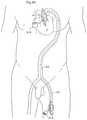 FIG. 44 show various ways of arranging hydraulic or pneumatic powering of an apparatus implanted in a patient.
