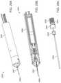 As best shown inFIG. 28N, apiston stop2727 can be coupled to a proximal end region of thepiston manifold2798. Thepiston stop2727 can be a generally cylindrical element surrounding the rotatingcam2769. A distal end region of thepiston stop2727 can define one ormore projections2729 configured to project into a proximal end region of each of thepiston chambers2704 in thepiston manifold2798. Theprojections2729 abut against the proximal piston heads2723bofrespective pistons2799 when positioned at a proximal-most end region of theirrespective piston chambers2704. For example, if thedevice2700 includes threepistons2799 positioned in threepiston chambers2704, thepiston stop2727 includes threeprojections2729 configured to abut against theproximal piston head2723bof each of the threepistons2799. Thepiston stop2727 provides a hard stop to the linear travel of thepistons2799 in a proximal direction upon expansion of thesprings2701 and thus, the overall volume of thepumping chamber2705 that can be achieved. The relative position of theprojections2729 within thepiston chambers2704 can be adjustable. In some implementations, anadjustment ring2730 can be positioned around an outer surface of thepiston stop2727 and available to a user through one ormore windows2731 in the housing of the hand-held portion2760 (seeFIGS. 28A-28B). Theadjustment ring2730 can have a threaded inner surface configured to engage with acorresponding pin2732 on an outer surface of thepiston stop2727. Thepin2732 is configured to slide within the threads of theadjustment ring2730 such that thepiston stop2727 travels axially along the longitudinal axis of the device. As thepiston stop2727 is adjusted to be positioned further distal relative to thepiston manifold2798, theprojections2729 extend further into thepiston chambers2704 and limit the linear travel of thepistons2799 in the proximal direction upon expansion of thesprings2701. This, in turn, limits the size of thepumping chamber2705. As thepiston stop2727 is adjusted to be positioned more proximally relative to thepiston manifold2798, theprojections2729 are withdrawn from thepiston chambers2704 and do not limit (or limit to a lesser degree) the linear travel of thepistons2799 in a proximal direction upon expansion of thesprings2701. This, in turn, maximizes the size of thepumping chamber2705.