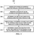 FIG. 3 is a flowchart of an example of aprocess300 of determining a liquid level in the annulus. Theprocess300 can be executed in part by theair flow sensor102 and in part by thecomputer system104. Also, thecomputer system104 can execute theprocess300 while a wellbore drilling assembly is drilling a wellbore. As described earlier, the drilling assembly includes a drill string, a rotary table and a bell nipple below the rotary table. At302, air flowing in a downhole direction through a portion of an annulus within the bell nipple below the rotary table is sensed. The airflows in the downhole direction responsive to a decrease in the liquid level in the portion of the annulus. The annulus is formed by the drill string and the inner wall of the wellbore. At304, a flow rate of the air flowing in the downhole direction is measured over the period of time. At306, a volume of air flowed in the downhole direction over the period of time is determined based on the flow rate and the period of time. At308, a volume of air flowed in the downhole direction of a computational annulus of a computational wellbore is computationally determined, for example, by implementing the FEM analysis described earlier. At310, a liquid level relative to the rotary table is determined based on the volume of air flowed in the downhole direction over the period of time.