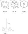 FIGS. 6A-C illustrate bottom plan views of the standing and movingbase1 in various embodiments comprising attachingmechanisms20 and/or drivingwheels21. The (driving) wheel or wheels may mount on attaching mechanisms and/or be retractable, tension-able and/or spring-able (e.g. for using, holding and releasing energy for achieving particular compressions, extensions and/or motions); in an example, the post may use any three wheels, each on any non-adjoining edge/segment of the hexagonal shaped base while the other wheels may be inactivated and/or retracted. Analogously the driving wheels may function on similar principles (e.g. activate particular ones based on (semantic) circumstances and/or semantic groups). Further, the mounts (wheel mounts, ball type mounts, module connecting mounts, band connecting mounts etc.) may be controlled (e.g. by compression, extension etc.) by semantic actuation based on observed circumstances. In an example, some mounts' compression is stiffened and others loosened when the system uses, observes and/or infers a trajectory which would determine an 80 HARD LEFT LEAN semantic; further, the 80 HARD LEFT LEAN may use further routes such as WHEEL MOUNT GROUP LEFT 75 COMPRESSION, WHEELMOUNT GROUP RIGHT 25 COMPRESSION.