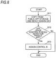 When it is determined that the app usage control has been designated (S2 “Yes”), the receivingunit200 assigns the input control ID to the public app (S3). That is, the control ID is registered in the public app management table214 illustrated inFIG. 3. Here, when the app usage control is a new one, the control ID is also registered in the app use control table213 illustrated inFIG. 2.