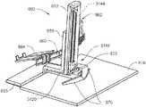 Referring toFIGS. 9A and 9B, theapparatus800 includes acrossbar860 attached to the mountingportion850 for mounting various equipment. For example, in some cases a monitor mount862 (e.g., a standard VESA connector), anotebook tray864, and/or other equipment mounts are attached to thecrossbar860, allowing the mountingportion850 to support and move the monitor, notebook, and/or other equipment. It should be appreciated, however, that a wide variety of equipment can be moved by the mountingportion850 and that the scope of the invention is not limited in this manner. For example, the mountingportion850 could be configured to support and move a combination of one or more monitors and/or notebooks or other equipment. In some embodiments the mountingportion850 is configured to support and move a combination of monitors and notebooks (e.g., two monitors and a notebook, three monitors and a notebook). In some embodiments the mountingportion850 is configured to support and move multiple monitors, such as sets of two, three, or four or more monitors. (SeeFIGS. 17A-17D for some examples of mounting options.)