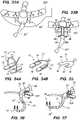 FIG. 28D is a cross-sectional view ofFIG. 28B taken alongline28D-28D, and showing mountingmechanism20,120 in the unlocked configuration and with movable jaw retraced so that the mountingmechanism20,120 can be removed from the rail202 (or to facilitate placing the mountingmechanism20,120 over the rail before clamping and locking it). By pushingactuator80 distally, thecam81 counter-rotates, thereby removing teeth82cfro contact withteeth84cand allowingmovable jaw82 to move away from fixedjaw84, as well asrail202, and providing enough clearance between bothjaws82,84 relative to rail202 to allow the mountingmechanism20,120 to be lifted off of therail202. The pushing motion of theactuator80 requires less effort by the user to unlock and remove the instrument from the surgical site. Further details about the operation of the cam relative to the movable jaw can be found in U.S. Pat. No. 6,685,632. Aspring88 is provided that biasesmovable jaw82 towards fixedjaw84. To first place thejaws82,84 over therail202, the user draws back onjaw82 while holding the fixed portion of themechanism20,120 (jaw84 or other fixed portion) to spread the jaws apart. Once the jaws have cleared the top rail flanges, thejaw82 can be released, andspring88 movesjaw82 towardsjaws84 to bring the jaws into lateral contact with therail202.