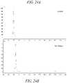 Referring toFIG. 24A-24B, are SEC chromatographs of Enbrel® diluted 4:1, (10 mg/ml) control (FIG. 24A) and aerosolized Enbrel solutions (FIG. 24B) collected from the test device after actuation. A single main peak is evident in chromatographs of the aerosolized Enbrel solution with an elution time of about 25 minutes. The tables below compare areas under the UV curves for the various peaks emerging at specified elution times (min) for controls and aerosolized Enbrel solutions.