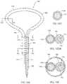 FIGS. 10I-10LA show various views of a third embodiment of a medical system comprising a hollow tube through which an elongate looped medical component is slidably introduced. InFIG. 10I,introducer sheath186 encloses a lumen through which an elongatefunctional tube188 is introduced.Functional tube188 is looped such that the one end offunctional tube188 passes throughintroducer sheath186 and exits through the proximal end ofintroducer sheath186. The other end offunctional tube188 terminatesoutside introducer sheath186 and is located distal to the distal end ofintroducer sheath186. The end offunctional tube188 passing throughintroducer sheath186 may be advanced and/or retracted and/or torqued or twisted to positionfunctional tube188 as desired in the anatomy.