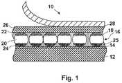 The use of high energy material removal techniques, such as laser ablation, is not recommended for removal of thelayers26 and16 since in practice such high energy techniques tend to damage theconductive layer14. As already mentioned, thesubstrate12 andconductive layer14 are conveniently formed from an ITO-coated PET film, and such films are available commercially. However, in such commercial films, the thickness of the ITO is only of the order of 100 nm (0.1 μm) and hence the ITO is relatively easily damaged by high energy removal techniques.