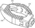 In one embodiment, an imaging element is a radiopaque element configured to be opaque to x-rays. In some embodiments, the non-imaging elements ofdevice410 are radiolucent. As such, when using an x-ray during insertion ofdevice410,components418,420,422,424,426, and428 will be visible on the x-ray image device (see, e.g.,FIGS. 29 and 32) in the form of image portions. One or more imaging elements may be configured to provide an indication or gauge (e.g., a visual indication or gauge) of a degree of expansion ofdevice410 when imaged from a predetermined imaging perspective.