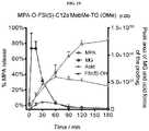 FIG. 10 shows conversion of I-22 into its monoglyceride form (in which both palmitic acid groups are cleaved) and release of MPA from the monoglyceride followed over time in rat plasma supplemented with LPL.