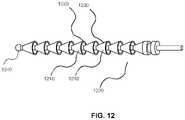By way of example,FIG. 11 illustrates aband1110 comprising a plurality ofgraspable components1130 at or proximate thesecond end1150 of theband1110. Thegraspable elements1130 may be objects, soft or hard balls made of plastic, metal, and/or polymer, protrusions, spikes, or any material that is capable of being grasped by a clasp. At or proximate thefirst end1160 of theband1110, aclasp1140 may be provided that is configured to grasp at least one of thegraspable components1130. Thesecond end1150 of theband1110 may be pulled through thefirst end1160 of theband1110. Then, theclasp1140 may be configured to transition from an open configuration to a closed configuration upon actuation by a clasp actuator to grasp at least one of thegraspable components1130 in order to form a loop of a desired circumference, preferably based on the unique anatomy of the patient.