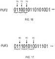FIG. 16 shows an example of an intermediate key (PUF2) generated during an obfuscation process byobfuscation processing module630, according to one embodiment. As mentioned above, the bits of PUF1 are inverted to provideinverted bits702.Bits702 are interleaved with the bits of PUF1 as illustrated. For example, every second bit in the illustrated key is an interleavedinverted bit702.