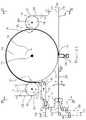 It is to be appreciated that theapparatus100 herein may be configured to include various types of accessories to help reduce capital costs and/or ensure consistent quality of manufactured products. For example, it is to be appreciated that components discussed herein that may be used to assemble elastic laminates, such as elastic films and nonwoven substrates may have a high neckdown modulus, resulting in different strip widths for small changes in tension. During assembly, transient neckdown may result in loss of film spreading in the laminate or require additional substrate width at additional product cost. As such, theapparatus100 herein may utilize various accessories to help reduce such variations in width. For example, the apparatus may include a linear or rotary dancer system, such as disclosed in European Patent Publication No. EP 2 841 364 A1. Such a dancer system may be operatively connected with a servo motor and drive controller operating in torque mode, and may result in substantially improved tension control of elastic films and nonwoven substrates, which in turn, may help reduce width variation. Various types of servo motor and drive controllers may be used, such as for example, a Kinetix 5700 system and MPL-B540K-SJ72AA motor from Rockwell Automation. The metering flow rate of an elastic film or nonwoven substrate may be controlled by a servo driven roller downstream of the servo tensioner.