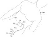 When unipolar stimulation is being provided, the stimulation signals may be delivered using various unipolar arrangements. A unipolar stimulation arrangement generally refers to the use of an anode on the conductiveouter casing106 that sources current and one or more cathodes on one or more leads (e.g.,110) that sink current. However, embodiments may utilize an anode that is instead in a proximal position on thelead110 which approximates the use of theouter casing106 as the anode.