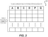 With the metadata and capacity objects of storage object O in place, when a client of distributedstorage system100 submits a write request for modifying a logical data block B of O, fullstripe write handler118 of the storage stack that owns (i.e., is responsible for handling) O can execute a write processing workflow comprising, inter alia, (1) logging the write request in a data log region of MetaObjO, (2) caching the write request in an in-memory bank120, and (3) caching certain metadata of O that is modified due to the write request (e.g., the LBA-to-PBA mapping for block B, segment usage table (SUT) information, etc.) in an in-memory metadata cache122. In various embodiments, in-memory bank120 is sized to hold an amount of write data equivalent to a predefined number of stripes of storage object O that will be written as a full stripe write to O's capacity object CapObjO. For example,FIG. 3 depicts an example in-memory bank300 for storage object O in the scenario ofFIG. 2 where CapObjO is striped across six components/nodes of distributedstorage system100 via 4+2 RAID-6. As shown inFIG. 3, in-memory bank300 includes six columns A, B, C, D, P, and Q corresponding to O's RAID-6 components CapObj_A, CapObj_B, CapObj_C, CapObj_D, CapObj_P, and CapObj_Q and 32 data block slots per column, resulting in a total capacity of 32 full stripes and 32×6=192 data blocks. Assuming the size of each data block is 4 KB, this means that in-memory bank300 ofFIG. 3 can hold 128 KB per component and 768 KB in total.