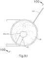 FIG. 9F depicts a top plan view of the eye ofFIG. 9A, with the instrument ofFIG. 1 being inserted through the sclerotomy opening and in between the sclera and choroid of the eye;