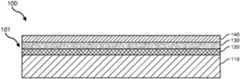 In one embodiment, theoptical component110 may include a surface of an electrode (e.g., a transparent conductor, not shown), that may be in contact with theindex gradient structure101. In various embodiments, the electrode may be configured in any suitable manner. For example, in some embodiments, the electrode may be formed from a thin film of electrically conductive and semi-transparent material, such as indium tin oxide (ITO). In some implementations, alternatives to ITO may be used, including transparent conductive oxides (TCOs) (e.g., wider-spectrum TCOs), conductive polymers, metal grids, carbon nanotubes (CNT), graphene, nanowire meshes, and thin-metal films. Additional TCOs may include doped binary compounds, such as aluminum-doped zinc-oxide (AZO) and indium-doped cadmium-oxide. Moreover, TCOs may include barium stannate and metal oxides, such as strontium vanadate and calcium vanadate. In some implementations, conductive polymers may be used. For example, a poly(3,4-ethylenedioxythiophene) poly(styrene sulfonate) (PEDOT:PSS) layer may be used. In another example, a poly(4,4-dioctyl cyclopentadithiophene) material doped with iodine or 2,3-dichloro-5,6-dicyano-1,4-benzoquinone (DDQ) may be used. The example polymers and similar materials may be spin-coated in some example embodiments.