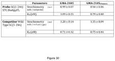 FIG. 30 summarizes the binding characteristics of the murine GMA-2105 and the chimeric GMA-2105. The chimeric antibody bound staphylocoagulase with a KDof 0.79±0.40 nM and a stoichiometry of 2 mol staphylocoagulase/mol chimeric antibody. The binding characteristics of the chimeric GMA-2105 were essentially identical to values for murine GMA-2105.