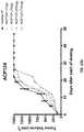 FIGS. 16a-16dare a series of survival plots showing survival of mice over time after treatment with cleavable fusion proteins.FIG. 16ashows data for mice treated with vehicle alone (gray line), 17 μg ACP16 (dark line), and 17 μg ACP124 (dashed line).FIG. 16bshows data for mice treated with vehicle alone (gray line), 70 μg ACP16 (dark line), and 70 μg ACP124 (dashed line).FIG. 16cshows data for mice treated with vehicle alone (gray line), 232 μg ACP16 (dark line), and 230 μg ACP124 (dashed line).FIG. 16dshows data for mice treated with vehicle alone (gray line), 232 μg ACP16 (dark line), and 700 μg ACP124 (dashed line).