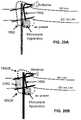 FIGS. 20A and 20B are block diagrams illustrating example, non-limiting embodiments of the transmission medium ofFIG. 18A used for inducing guided electromagnetic waves on power lines supported by utility poles.