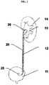 FIG. 2 shows a ureteric stent (20) depicted inFIG. 1 as positioned within a human body. A proximal retention structure (25) configured for retaining the proximal portion in the urinary bladder (11), a central portion configured to fit the ureter (12) of a human patient, and a distal retention structure (26) configured to stay in the renal pelvis (13) of kidney (14) and prevent stent migration are shown.