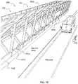 FIG. 4 andFIG. 5 disclose an embodiment of the present invention in the form ofbarrier wall20 in which a canopy like structure is comprised ofvertical posts43 and inclinedstructural frames44. Structural Solar Panels (SSPs)45 are supported over inclined frames44.SSPs45 are similar toassembly8 or assembly1000 (FIGS. 15, 15a). The vertical portion ofbarrier wall20 is comprised ofvehicle impact barrier40,rigid infill panels41,advertising panels42 andstructural posts43.Infill panels41 can be precast concrete, fiber reinforced plastic or a sandwich assembly of composite materials. In one embodiment of the inventionmicro wind turbines47 secured overposts46 are installed in rows alongbarrier wall20 to supplemental electricity output Structural Solar Panels (SSPs)45.