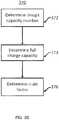Atstep374 ofprocess370, in some examples, the battery's current full charge capacity can be determined. The full charge capacity of the battery can be effected by the state of health of the battery, and can quantify how efficiently the battery is currently operating based on a number of factors such as temperature, current draw, battery voltage, battery impedance, and battery age, for example. Additional or alternative factors are possible. In some examples, not all of the aforementioned factors are used to determine the full charge capacity. The full charge capacity can be expressed in units of power such that the value of the full charge capacity can be equal to the available capacity if the battery were fully charged and operating at its current efficiency, for example. That is to say, the available capacity can be equal to the battery's total capacity minus the power that is wasted due to inefficient battery use. In some examples, other ways of expressing full charge capacity are possible.