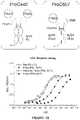 FIG. 13 depicts the results of a Daudi lymphoma cell-based assay for measuring the anti-proliferation activity (top) and the results of an HEK293 cell-based reporter assay for measuring the activity (bottom) of an ACC (ProC440), a protease-treated ACC (ProC440+uPA), and stem cell IFNα2b. The results indicated that activity was reduced 1000× by making the ACC structure of the present disclosure and, following treatment of the ACC with a protease, the activity of the cytokine in the ACC was restored to a level comparable to the recombinant parental cytokine.