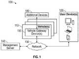 Thevehicle interface326 can communicate with a vehicle bus. As described herein, the vehicle bus is an internal communications network that connects components, such as a car's electronic controllers, within a vehicle. Example protocols that thevehicle interface326 can communicate with can include, but are not limited to, Controller Area Network (CAN), Local Interconnect Network (LIN), OBD-II or OBD2, and/or J1939. Accordingly, thevehicle interface326 can allow access to the vehicle's electronic controllers. Thevehicle gateway device150, via thevehicle interface326, can access vehicle diagnostics, such as fuel level, engine revolutions per minute (RPM), speed, engine torque, engine load, brake use, etc. In some embodiments, thevehicle gateway device150, via thevehicle interface326, can receive messages from the vehicle bus from the car's electronic controllers related to vehicle data, such as fuel level, engine revolutions per minute (RPM), speed, engine torque, engine load, brake use, etc. Additionally or alternatively, thevehicle gateway device150, via thevehicle interface326, can query the car's electronic controllers to receive vehicle data, such as fuel level, engine revolutions per minute (RPM), speed, engine torque, engine load, brake use, etc.