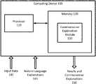 The results and explanation of commonsense reasoning are provided as output (e.g.,output150 from commonsense explanation module130).
