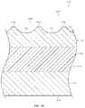 The surface features260 may be characterized by the root mean square slope (Sdq), also referred to as the root mean square gradient. In some embodiments, the root mean square slope may be greater than zero and less than about 1.25, greater than zero and less than about 1, from about 0.1 to less than about 1, from about 0.25 to less than about 1, from about 0.25 to about 0.75, or from about 0.1 to about 0.5.