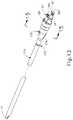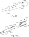 FIGS. 117A-118F show how waveguide guiding member (1200) will consistently guide waveguide (1092) into a specific, predetermined angular orientation when waveguide (1092) is fully inserted into waveguide guiding member (1200), regardless of the angular orientation at which waveguide (1092) is initially inserted into waveguide guiding member (1200). Before waveguide (1092) is inserted into waveguide guiding member (1200) as described below, the operator can push inner tube coupling member assembly (1150) from the proximal position shown inFIG. 113 to the distal position shown inFIG. 94, with latch (1009) re-engaging flange (1174). This will disengage ridges (1182) of deflector member (1180) from arms (2012), enabling arms (2012) to resiliently to resiliently return to the position shown inFIGS. 94 and 102. With inner tube coupling member assembly (1150) in the distal position and arms (2012) returned to the shown inFIGS. 94 and 102, arms (2012) will again reach over ridges (1182) of deflector member (1180) to engage pin (1094) of waveguide (1092) when waveguide (1092) is fully inserted into waveguide guiding member (1200) as described below. Alternatively, waveguide (1092) and inner tube coupling member assembly (1150) can be simultaneously inserted into waveguide guiding member (1200). As waveguide (1092) and inner tube coupling member assembly (1150) are simultaneously inserted into waveguide guiding member (1200), ridges (1182) of deflector member (1180) will disengage from arms (2012), enabling arms (2012) to resiliently return to the position shown inFIGS. 94 and 102.