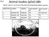 In order to investigate these effects in vivo, 2 grams human PMP mucin were implanted into 3 nude rats and achieved complete or near complete dissolution (seeFIG. 4.) in animals treated with Br and NAC and nil dissolution with buffer control.