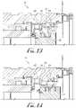 FIGS. 13 and 14 are each cross-sectional detail views illustrating the sliding fenestration system in a closed and opened position at the head portion, respectively, in accordance with one embodiment.
