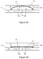 As shown inFIGS. 3A,B, for any given diaphragm valve station, there are at least two liquid channels: a first channel terminating intovalve port34aofmidplate12, and a second channel terminating intovalve port34bofmidplate12. (In some embodiments a plurality of liquid channels could terminate into separate valve ports in the midplate of a single valve station). As shown inFIGS. 3A and 3B, the excursion depth E is determined in the case of a diaphragm valve by the degree of relaxation required to allow thediaphragm18 to lift away from thefluid ports34a,bit is designed to occlude. Thevalve diaphragm36 may then move away from theports34a, bunder negative actuation pressure to allow liquid flow as shown inFIG. 3A, or may move to occlude theports34a, bunder positive actuation pressure to interrupt liquid flow as shown inFIG. 2B. The separate liquid channels in the valve station of a cassette are represented schematically by thewall38 shown in the secondinter-plate space12. In the illustration shown, thevalve ports34a, bmay optionally comprise raised elements40 (placed circumferentially around the valve port) to improve the sealing efficiency of the diaphragm. Such a raised element may only need be present around one of the valve ports to be effective. Thus as the valve diaphragm relaxes or is drawn away from the liquid ports of the valve, liquid is allowed to flow from one liquid channel, through its associated port into a liquid valve chamber, and then out through the liquid port of a second liquid channel connected to that valve station. The choice of cross-sectional area of the liquid channels may depend on a desired liquid flow resistance and a desired hold-up volume or dead space occupied by the liquid channels in the cassette. The desired cross-sectional area of the liquid channels will in turn determine the depth of the liquid channel (or channel wall height) occupying the secondinter-plate space22 between thecassette midplate12 and the secondouter plate16. The liquid and actuation channels may be formed from the midplate or the respective outer plates, or may be formed independently of the outer plates or midplate. In a preferred arrangement, the midplate is formed in a mold, 3-D printed or otherwise cast with the desired channel walls on both sides of the midplate, so that the construction of the outer plates can be simplified. Theouter plate14 may comprise the roof or diaphragm-limiting wall of theactuation chamber26, and theouter plate16 may comprise the roof or the liquid channels in the cassette. In this way, the inter-plate space between the midplate and the outer plates can be further reduced.