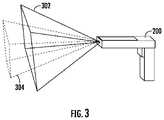 The far-field illumination may be produced so as to substantially or entirely illuminate the far field ofview304. The far-field illumination may be produced in accordance with an illumination pattern that sufficiently illuminates the entirety of the far field ofview304 for capturing by a corresponding far-field image sensor. The far-field illumination may illuminate only a percentage of the near-field ofview302, for example a center percentage (e.g., 25%, 50%, or the like) of the near field ofview302.