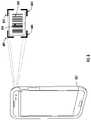 FIG. 6 illustrates an aimer projection by a multi-sensor imaging apparatus, in accordance with an example embodiment of the present disclosure. In some example embodiments, the multi-sensor imaging apparatus may be asmartphone602 having multiple imaging assemblies such as theimaging assemblies400 and/or500. In this regard. the smartphone603 may have an aimer module integrated with the smartphone or available as an add-on module to help target an indicia for scanning.