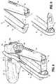 To selectively releaseSULU400 fromadapter200, a practitioner translates or pullsactuation bar284 in a proximal direction, such thatextension284aofactuation bar284 is no longer blockingsecond lug412bofSULU400 andSULU400 can be rotated.SULU400 is rotated, in a direction indicated by arrow “F” inFIG. 63, to movesecond lug412bofSULU400 out of abutment withinner ledge208dofdistal cap208. The rotation ofSULU400 also drives the rotation ofannular member360 from the second orientation to the first orientation via the mating engagement offirst lug412aofSULU400 and surface feature376aofannular member360. Asannular member360 rotates, surface feature376arides along taperedportion352aofextension352 ofswitch actuator340 to driveswitch actuator340 in a proximal direction untilannular member360 is in the first orientation andswitch actuator340 is in the proximal position, out of engagement withswitch320. Upontab354 ofswitch actuator340 disengagingswitch320,switch320 is toggled, which communicates tosurgical device100 thatSULU400 may be pulled out ofadapter200.