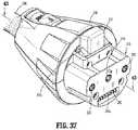 FIG. 80 is a flow diagram of amethod2000 of calibrating the articulation and firing functions of an adapter capable of attaching to a reload of the first type. A determination is made as to whether a reload is attached to the adapter at S2002. If a reload is attached to the adapter, calibration does not occur, an error screen is displayed, and a fault tone is sounded at S2004. If a reload is not attached to the adapter, a determination is made as to whether the software version stored in the adapter is compatible with the software of the power-pack at S2006. It will be appreciated that in another embodiment, calibration occurs regardless of whether a reload is attached, and hence in such anembodiment method2000 begins from S2006. If the software version stored in the adapter is not compatible with the software of the power-pack, the power-pack updates the adapter software before calibration at S2008. At S2010, a determination is made as to whether the update is successful. If such update fails, firing calibration is performed but articulation calibration is not performed and entering the firing state is prohibited at S2012. If the software of the adapter and power-pack are found to be compatible at S2006 or the software update is successful at S2010, calibration of the articulation function and the firing function occurs at S2014. Calibration of the articulation function involves obtaining a reference position by driving the articulation shaft left until it stops at its mechanical limit and then returning the articulation shaft back to the center position. Calibration of the firing function is effected by obtaining a reference position by driving the firing shaft proximally until it stops at its mechanical limit, followed by returning the firing shaft distally to its home position.