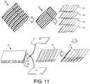 Referring toFIG. 2, there is shown a schematic sketch of an exemplary configuration of thelightguide3. In a first set of non-limiting implementations, thelightguide3 is comprised of two layers having different orientations of internal facets. Each of afirst section14 and asecond section12 can beLOEs903, as described above. As such, the first and second sections are referred to in the context of this document as respective first and second LOEs, or first and second layers, or first and second facet sections. Each section contains a respective set of facets. Thefirst section14 includes a first set offacets32 and thesecond section12 includes a second set offacets36. The first and second sections (14,12) are deployed in an overlapping relation relative to the viewing direction of the user (the user's eye10). In this example,second layer12 overlaps on top offirst layer14 to generate an overlapping facet pattern of afinal lightguide16. Note, the orientations depicted in the current figure are shown simply and roughly for clarity of the description. As thelightguide16 has at least two sets of facets that at least partially overlap in the viewing direction of a user, thelightguide16 is also referred to as an “overlapping lightguide.”