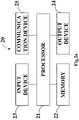 Processor21 may comprise means, such as circuitry, for implementing audio, video, communication, navigation, logic functions, and/or the like, as well as for implementing embodiments of the disclosure including, for example, one or more of the functions described herein. For example,processor21 may comprise means, such as a digital signal processor device, a microprocessor device, various analog to digital converters, digital to analog converters, processing circuitry and other support circuits, for performing various functions including, for example, one or more of the functions described herein. The apparatus may perform control and signal processing functions of theelectronic apparatus20 among these devices according to their respective capabilities. Theprocessor21 thus may comprise the functionality to encode and interleave message and data prior to modulation and transmission. Theprocessor21 may additionally comprise an internal voice coder, and may comprise an internal data modem. Further, theprocessor21 may comprise functionality to operate one or more software programs, which may be stored in memory and which may, among other things, cause theprocessor21 to implement at least one embodiment including, for example, one or more of the functions described herein. For example, theprocessor21 may operate a connectivity program, such as a conventional internet browser. The connectivity program may allow theelectronic apparatus20 to transmit and receive internet content, such as location-based content and/or other web page content, according to a Transmission Control Protocol (TCP), Internet Protocol (IP), User Datagram Protocol (UDP), Internet Message Access Protocol (IMAP), Post Office Protocol (POP), Simple Mail Transfer Protocol (SMTP), Wireless Application Protocol (WAP), Hypertext Transfer Protocol (HTTP), and/or the like, for example.