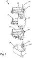 FIG. 1 illustrates an assembly of bins mounted on a vertical rail with bin lock securing devices according to an exemplary embodiment;
