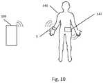 FIG. 10 illustrates one non-limiting example of a system configured to automatically control an insulin pump.Sensor5 is in proximity to subject140, for example, being on a strap worn on the wrist ofsubject140. In the embodiment shown inFIG. 10,sensor5 is configured to detect blood glucose levels insubject140. The subject140 has aninsulin pump142, configured to deliver insulin when subject140 is in need thereof. Theinsulin pump142 is configured to receive data and control the administration of insulin based on the data. The data can be a blood glucose level measured by thesensor5, or a command regarding the administration of insulin based on the blood glucose level measured by thesensor5. In an embodiment, the data can be received at theinsulin pump142 directly fromsensor5. In this embodiment, the data can be the measurement of blood glucose to be processed atinsulin pump142, or a signal processed at one or both of thesensor5 and theinsulin pump142 to determine the control of the administration of insulin byinsulin pump142. In an embodiment,sensor5 can communicateseparate device106, which can receive the data fromsensor5, and convey data toinsulin pump142.Separate device106 can perform at least some processing of the data, for example receiving a blood glucose level fromsensor5 and processing the blood glucose level to determine the command for administering insulin frominsulin pump142.Sensor5,insulin pump142, and optionallyseparate device106 can respectively communicate with one another through any suitable wired connection or, as shown in the embodiment inFIG. 10, wireless communications or data connections such as Bluetooth, cellular data communications such 4G, 5G, LTE or the like, or Wi-Fi.